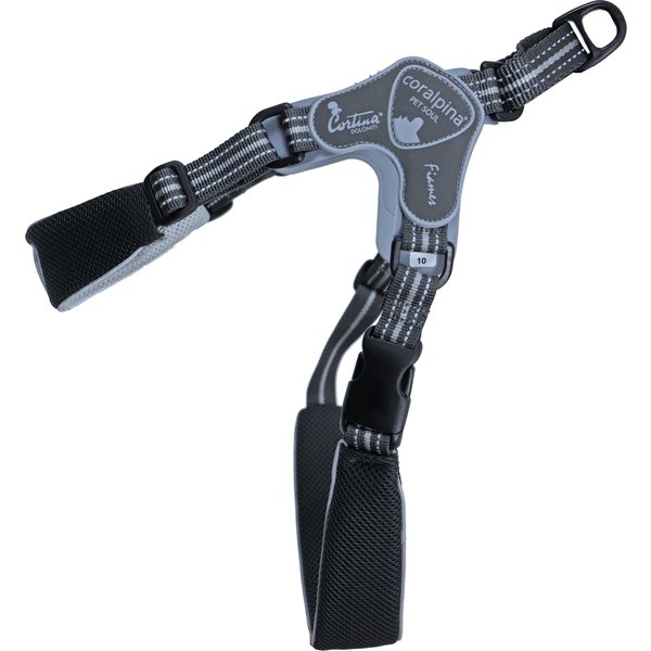Het Coralpina Fiames Harness is een veelzijdig tuig. Het is eenvoudig in gebruik. lichtgewicht, daarnaast is het voorzien van reflecterend stiksel en een dynamisch systeem dat zich aanpast aan de bewegingen van de hond. Het Fiames tuig is gemakkelijk schoon te maken en zacht op de vacht. Het Fit en Grab-bevestigingssysteem, dat licht aanspant wanneer uw huisdier trekt, bevat een comfortabele handgreep en is een handig hulpmiddel bij het trainen van honden. verkrijgbaar in de maten 9 en 10. Aangegeven maten en gewichten zijn indicatief, dit kan dus per ras afwijken. Pas een tuig daarom altijd: Maat 9 - 70-78 cm / 18-35 kg. Maat 10 - 76-90 cm / 35-45 kg.