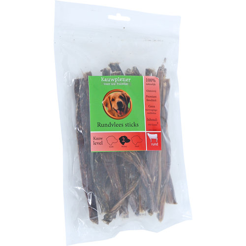 Deze rundvlees sticks zijn een heerlijke traktatie voor uw trouwe viervoeter. 100% natuurlijk, glutenvrij, premium kwaliteit en zonder toevoegingsmiddelen. Ook staat er op iedere verpakking een kauwlevel vermeld die de hardheid aangeeft van level 1 tot 3....Meer informatie