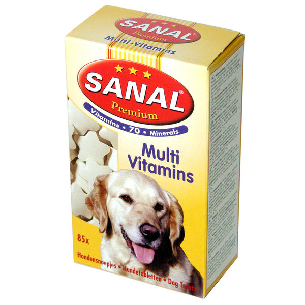 * Rijk aan gist met vitamine B1, B2, B6 en B12. * Voor een gezonde en glanzende vacht. * Met calcium voor sterke botten en tanden. * Laag vetgehalte en suikervrij. Sanal Hond Premium Multi Vitamins is een lekkere en gezonde traktatie voor je hond. Vitamine B1, B2, B6 en B12 in de speciale hoogwaardige gist voor een gezonde en glanzende vacht. Calcium helpt tanden en botten sterk te houden. Mineralen helpen het natuurlijke afweersysteem te versterken.