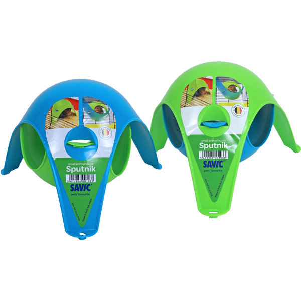 Savic Sputnik is een vrolijk gekleurd huisje gemaakt van duurzaam kunststof voor knaagdieren. Het bijzondere aan dit huisje is dat het op de grond geplaatst kan worden en tevens aan de tralies van het verblijf kan worden opgehangen. Een ideale slaapplek waar uw knaagdier zich comfortabel in kan terugtrekken. Als de Sputnik ophangt zal uw knaagdier moeten klimmen om het te bereiken, dit zorgt voor veel klauterplezier. De Sputnik is makkelijk uit elkaar te halen en te reinigen. Savic Sputnik is verkrijgbaar in twee maten: Savic Sputnik: ± 21 x 21 x 12 cm - Geschikt voor (dwerg)hamsters, gerbils en muizen. Savic Sputnik XL: ± 30 x 30 x 19 cm - Geschikt voor ratten en fretten.
