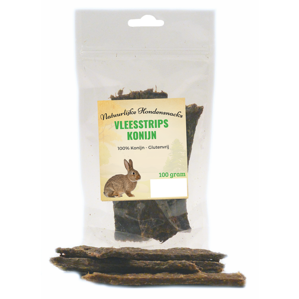 Natuurlijke hondensnacks Vleesstrips konijn 100 gram