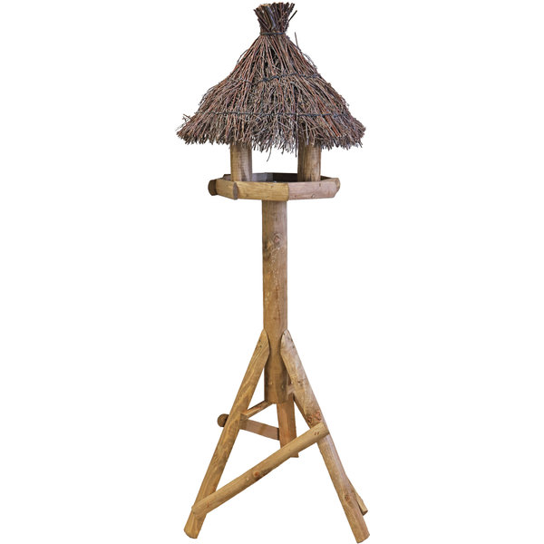 Voederhuis bruin met rond tenen dak op poot is een gezellig en duurzaam voederhuis voor vele soorten buitenvogels. Het voederhuis is makkelijk te verplaatsen en is gemaakt van vurenhout en is afgewerkt met een rond tenen dak. Het hout is geïmpregneerd in een bad, waardoor dit huisje het gehele jaar gebruikt kan worden. Zo zullen diverse soorten buitenvogels uw tuin bezoeken, die u op hun beurt laten genieten van hun aanwezigheid en bedrijvigheid.